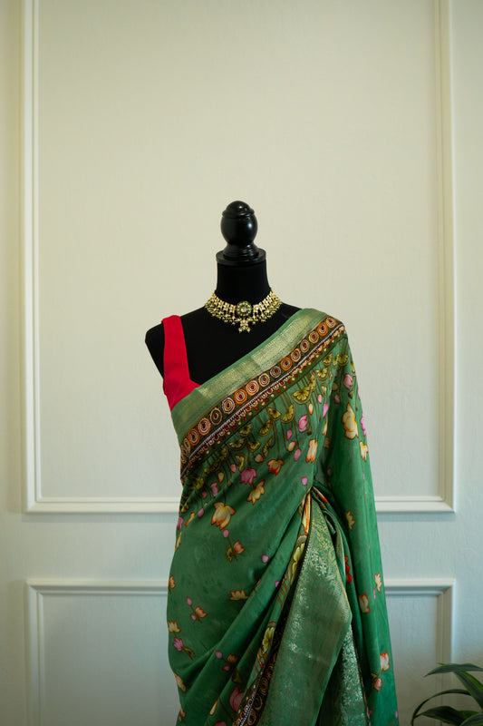 Neon Green | Handloom Silk Pre-Draped
