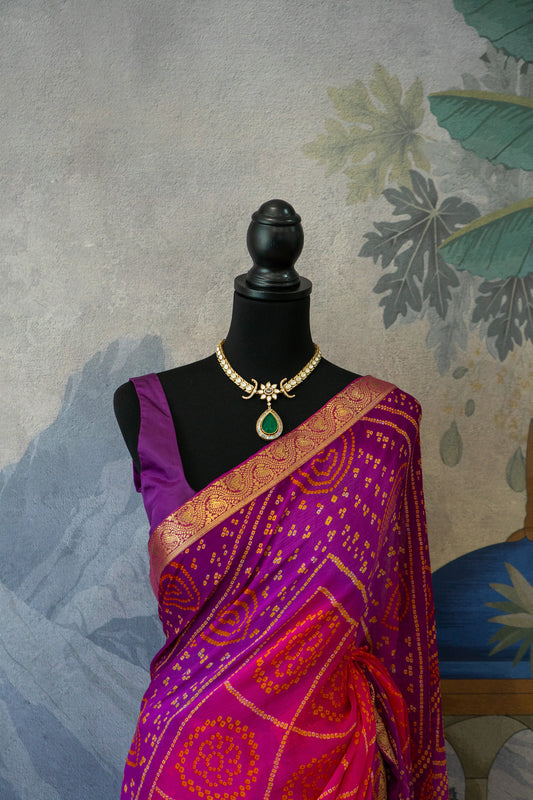 Pink-Purple | Bandhani Pre-Draped