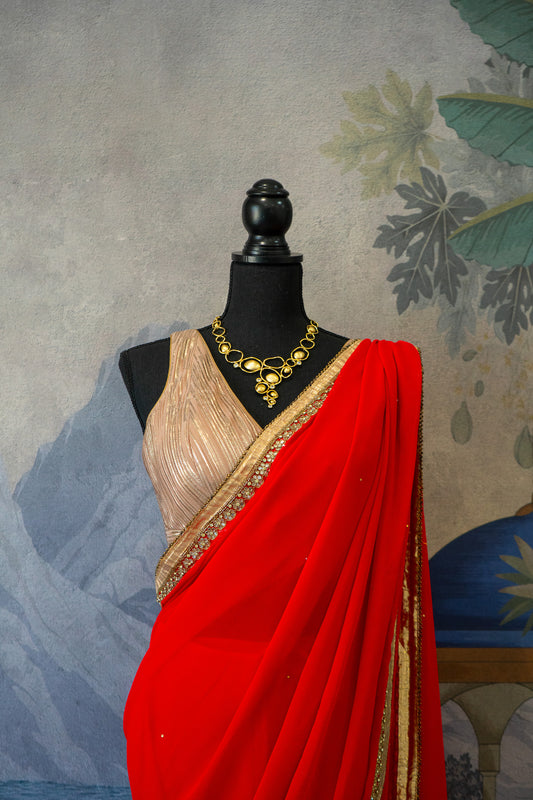 Red | Georgette Pre-Draped